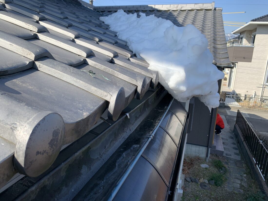 秋葉区は新潟市の中でも内陸寄りで、積雪が多い地域です。屋根に積もった雪が溶けて雨樋に流れ込み、凍結や重量による破損がよく見られます。