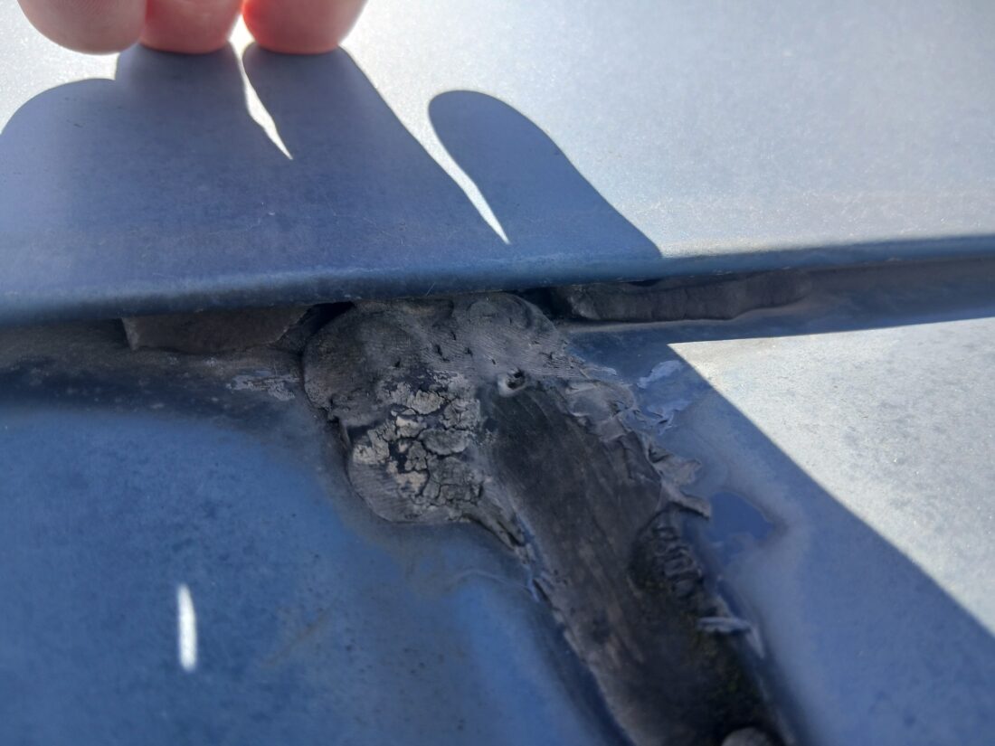 天窓枠まわりの板金に隙間・防水処理の弱りが見られました。