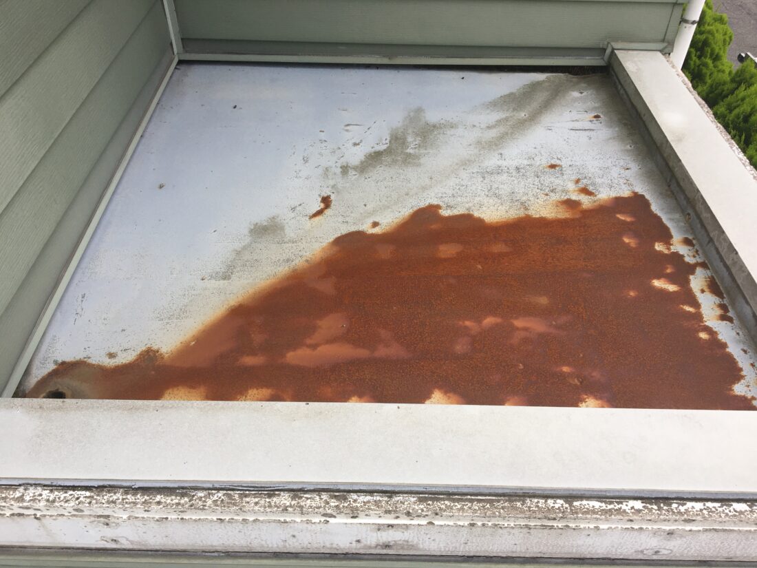 陸屋根に水たまり跡・広範囲の錆