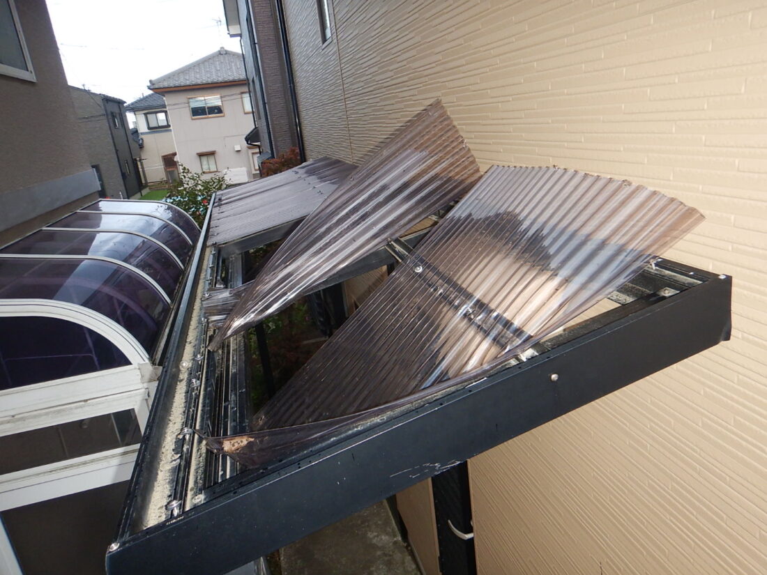 強風によるポリカ波板の破損
