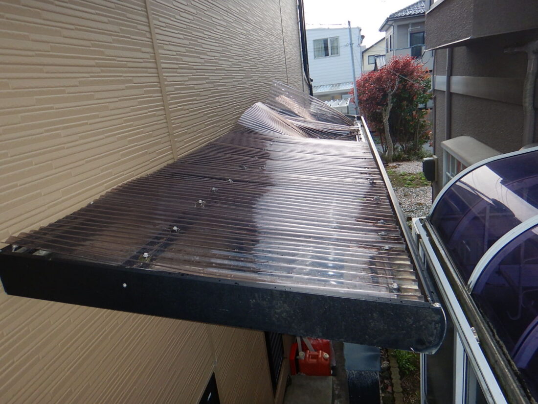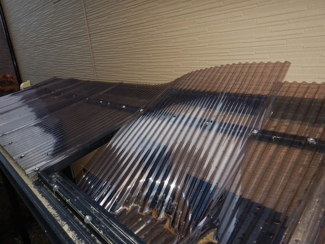 が重なり、ポリカ屋根は10〜15年程度で交換時期を迎えるケースが多いです。
